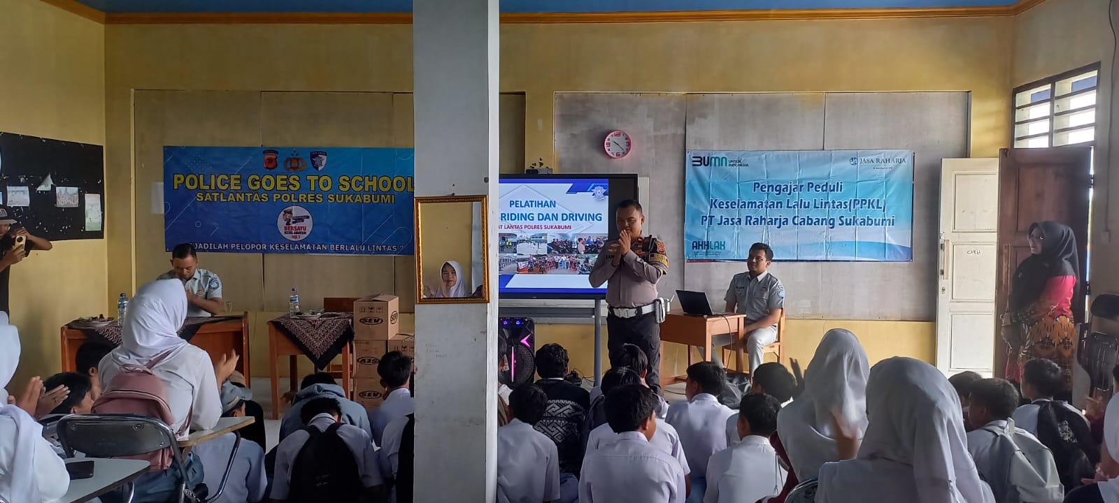 — Jasa Raharja Sukabumi menunjukkan komitmen nya dalam meningkatkan kesadaran keselamatan berlalulintas dengan membagikan helm SNI gratis kepada para pelajar dan guru yang patuh dan tertib serta berprestasi di SMK tunas Bhayangkara Cidahu Sukabumi. Kegiatan ini dilakukan dalam rangka Polantas Menyapa Pengajar Peduli Keselamatan Berlalu Lintas Dan merupakan bagian dari kampanye keselamatan berlalu lintas yang rutin dilakukan oleh Jasa Raharja Perwakilan Sukabumi, Selasa (16/12/2025).