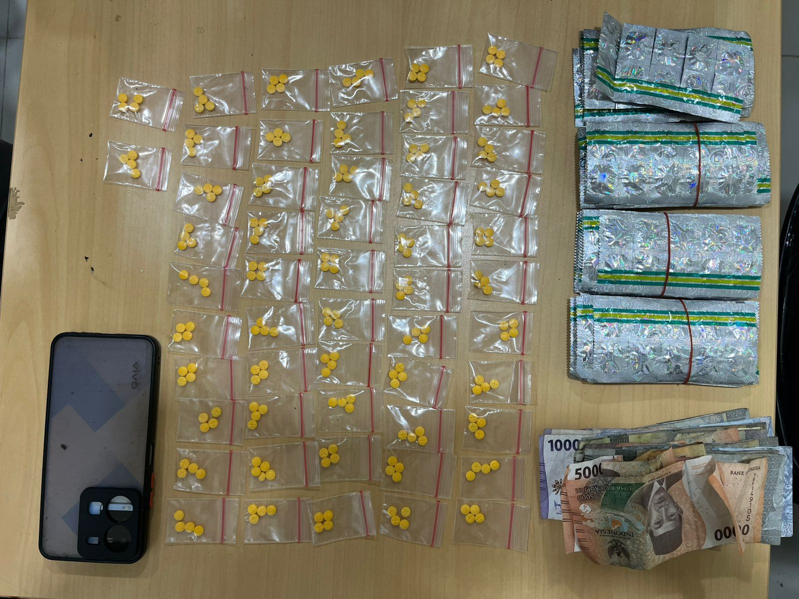 Turut disita satu unit handphone merk Vivo milik pelaku yang kami amankan untuk dilakukan pengembangan terkait data komunikasi dengan penyuplai obat terlarang tersebut.