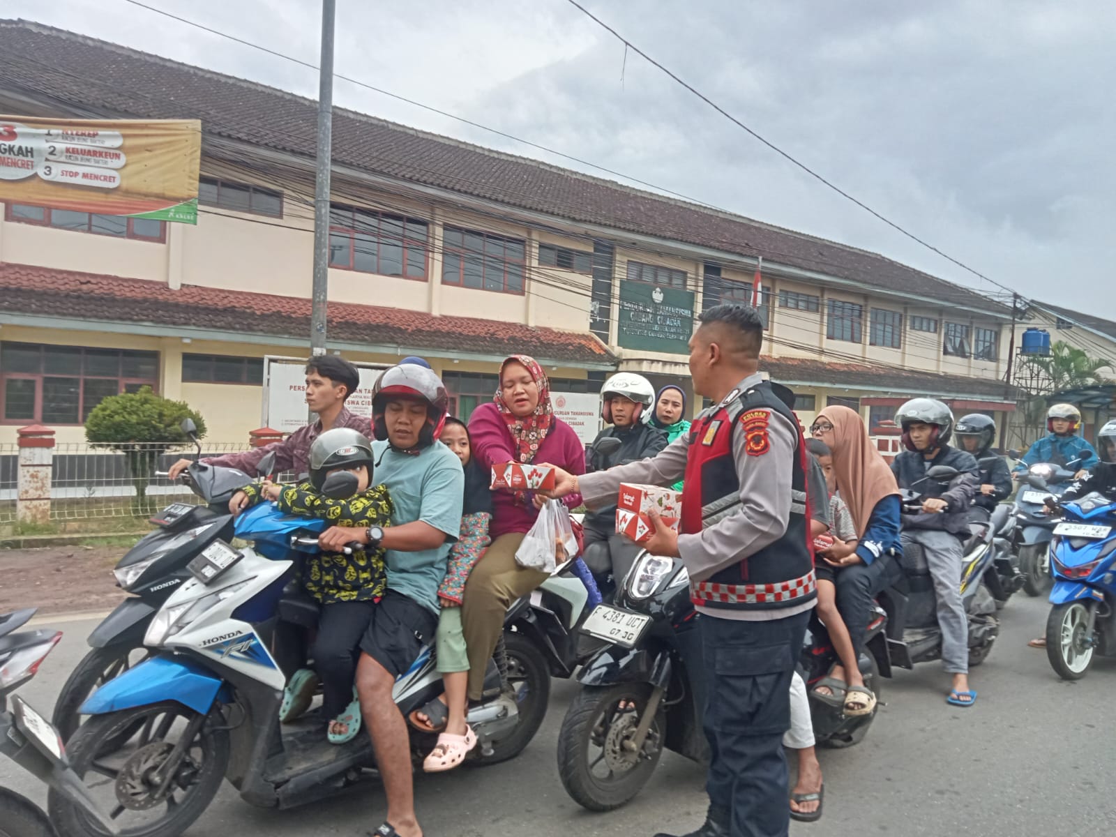 Sejak sore hari, anggota kepolisian dan Bhayangkari tampak kompak membagikan paket takjil kepada pengendara roda dua, roda empat, hingga pejalan kaki. Aksi sosial ini disambut antusias warga yang merasa terbantu untuk sekadar berbuka puasa di perjalanan.