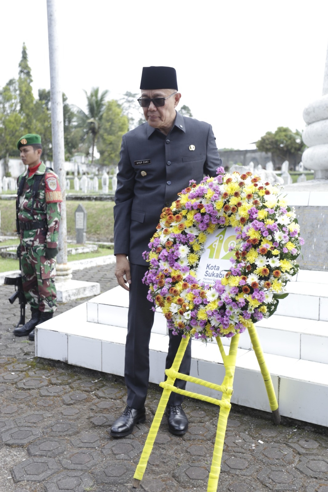 Upacara ziarah dipimpin langsung oleh Wali Kota Sukabumi H. Ayep Zaki, S.E., M.M., selaku pimpinan rombongan, dengan Wakil Wali Kota Bobby Maulana, Bertindak sebagai Perwira Upacara Kapten Inf Maman Sulaeman (Pasi Pers Kodim 0607/Kota Sukabumi). Kegiatan diikuti sekitar 300 peserta dari unsur TNI, Polri, pemerintah daerah, serta berbagai elemen masyarakat.